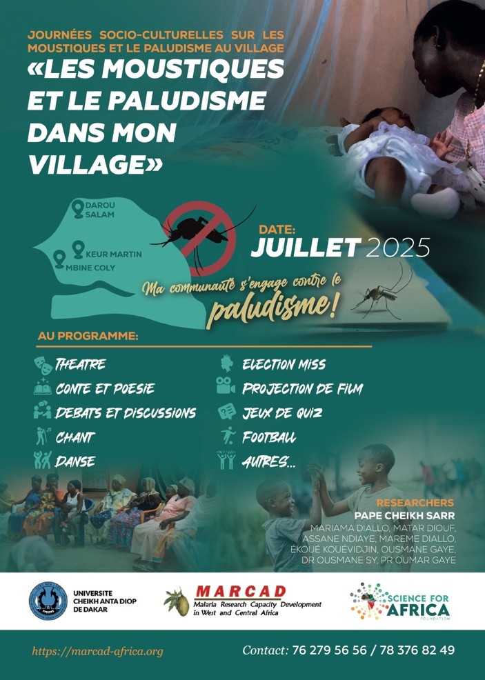 With support from the SFA Foundation, I am leading a two-year community engagement project titled “Socio-Cultural Days on Mosquitoes and Malaria in My Village,” implemented in three rural communities in Senegal: Darou Salam (Saint-Louis), Keur Martin (Fatick), and Mbine Coly (Thies). The first edition, held in July 2025, was a great success, bringing together community members, local leaders, and health workers to engage in cultural events, including theatre, music, storytelling, debates, and games. Participants, especially women and youth, were encouraged to share their understanding of malaria, local prevention practices, and perspectives on researchers and research. The project strengthens ties between researchers and communities, creating inclusive spaces for dialogue around malaria and mosquito control. By valuing community input, we adapt scientific interventions to local realities and enhance the effectiveness of vector control strategies. The second edition is planned for 2026 to continue building awareness and engagement in these rural communities.
