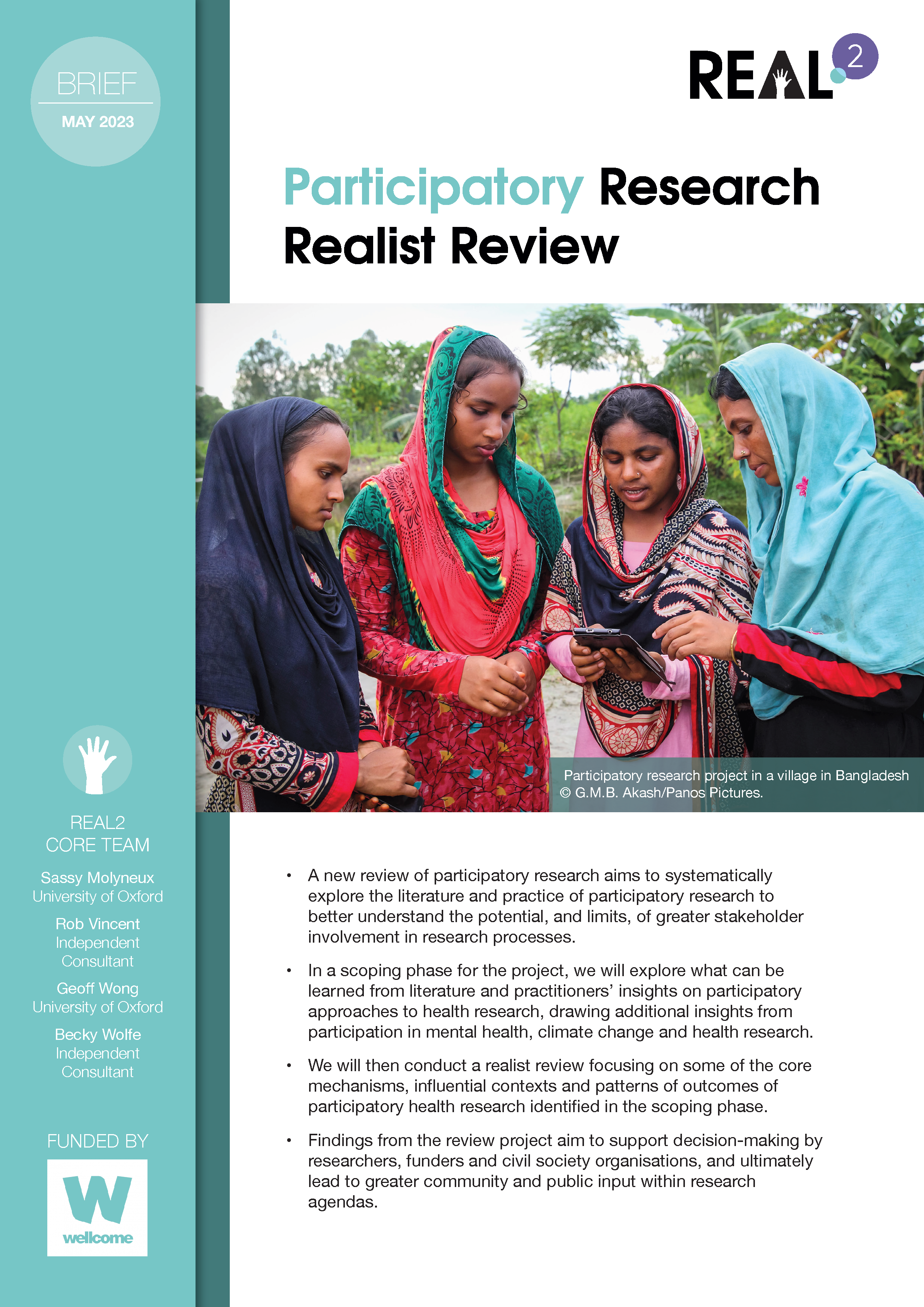REAL2 will complement an initial Realist Review of Community Engagement undertaken by the same research group. Together, the work aims to inform the development of both community engagement and participatory research strategies and develop practical guidance that supports decision-making in research centres and funding organisations.