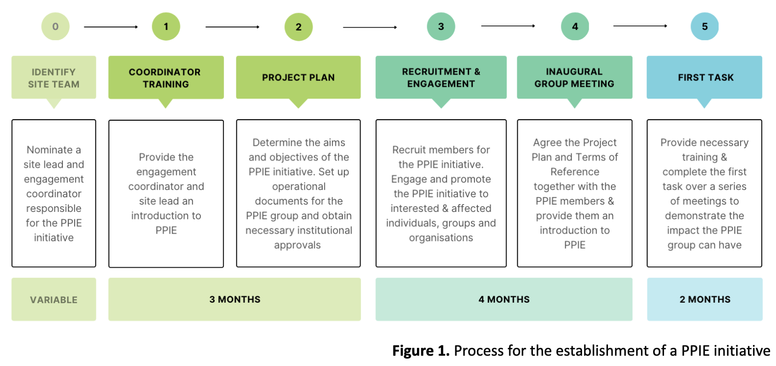 Establishment of a successful PPIE initiative takes careful planning and execution. Figure 1 provides an overview of a process which can be followed to establish a PPIE group and the list below highlights the importance of each step in the overall success of an initiative. The remainder of this toolkit gives detailed guidance for each step.